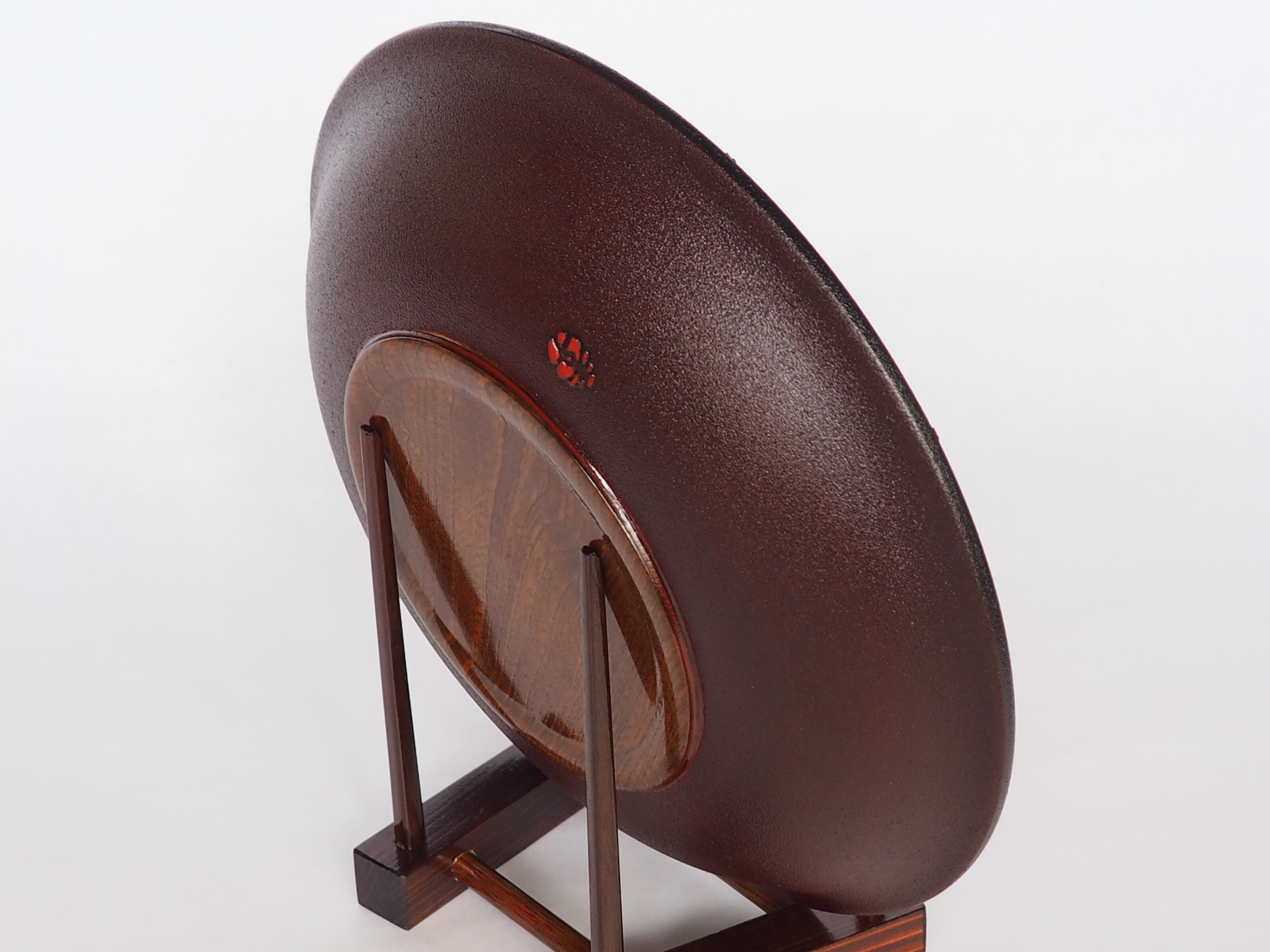 普通の漆器では漆と顔料を混ぜた「色漆」を塗るのですが、これは漆と顔料を混ぜるのではなく、薄く塗った漆の上に朱の顔料を蒔いて、それを数度繰り返して漆と顔料の層を何層も作って、それを研ぎあげて更に漆を薄く数回塗って仕上げています。