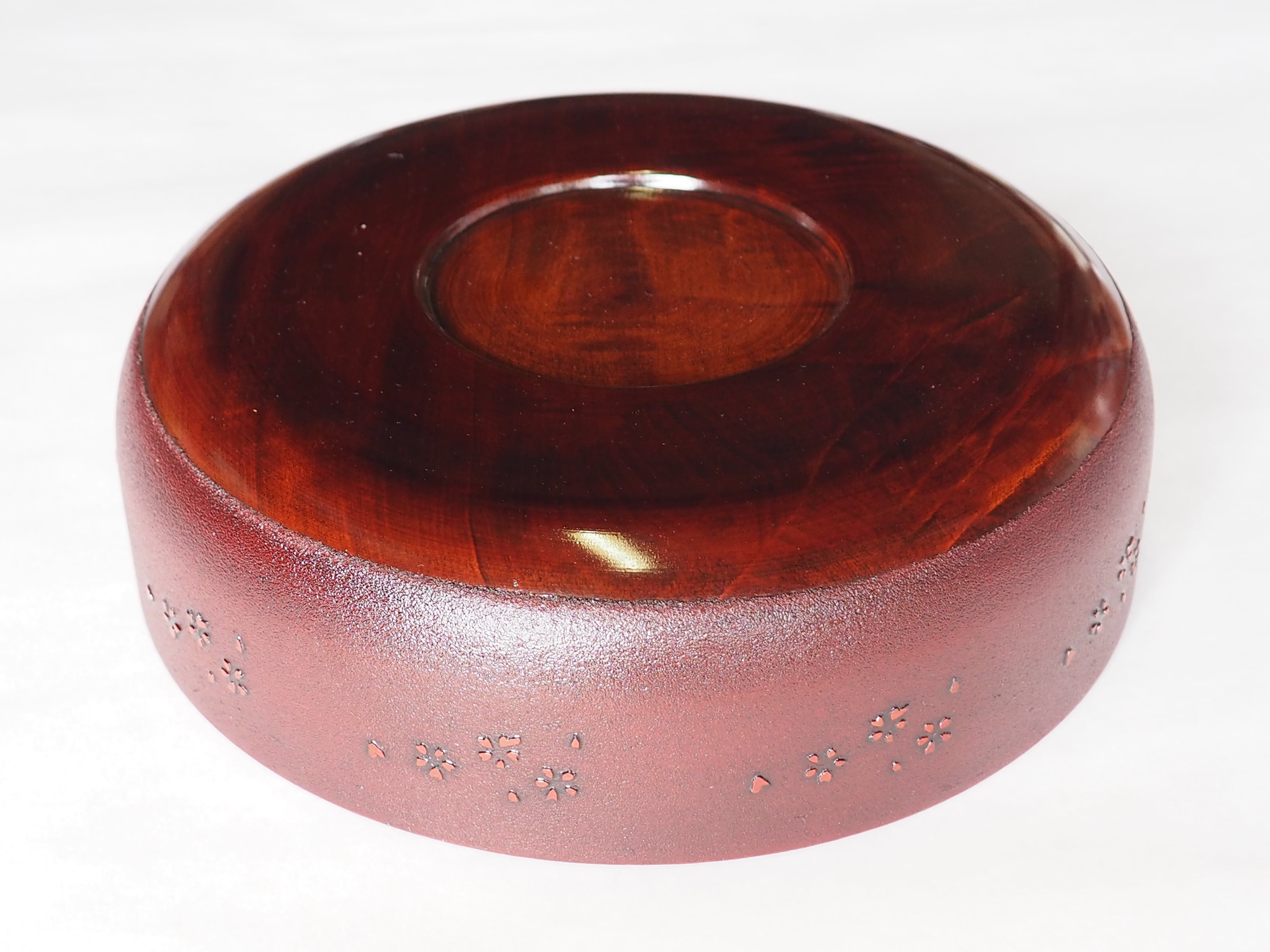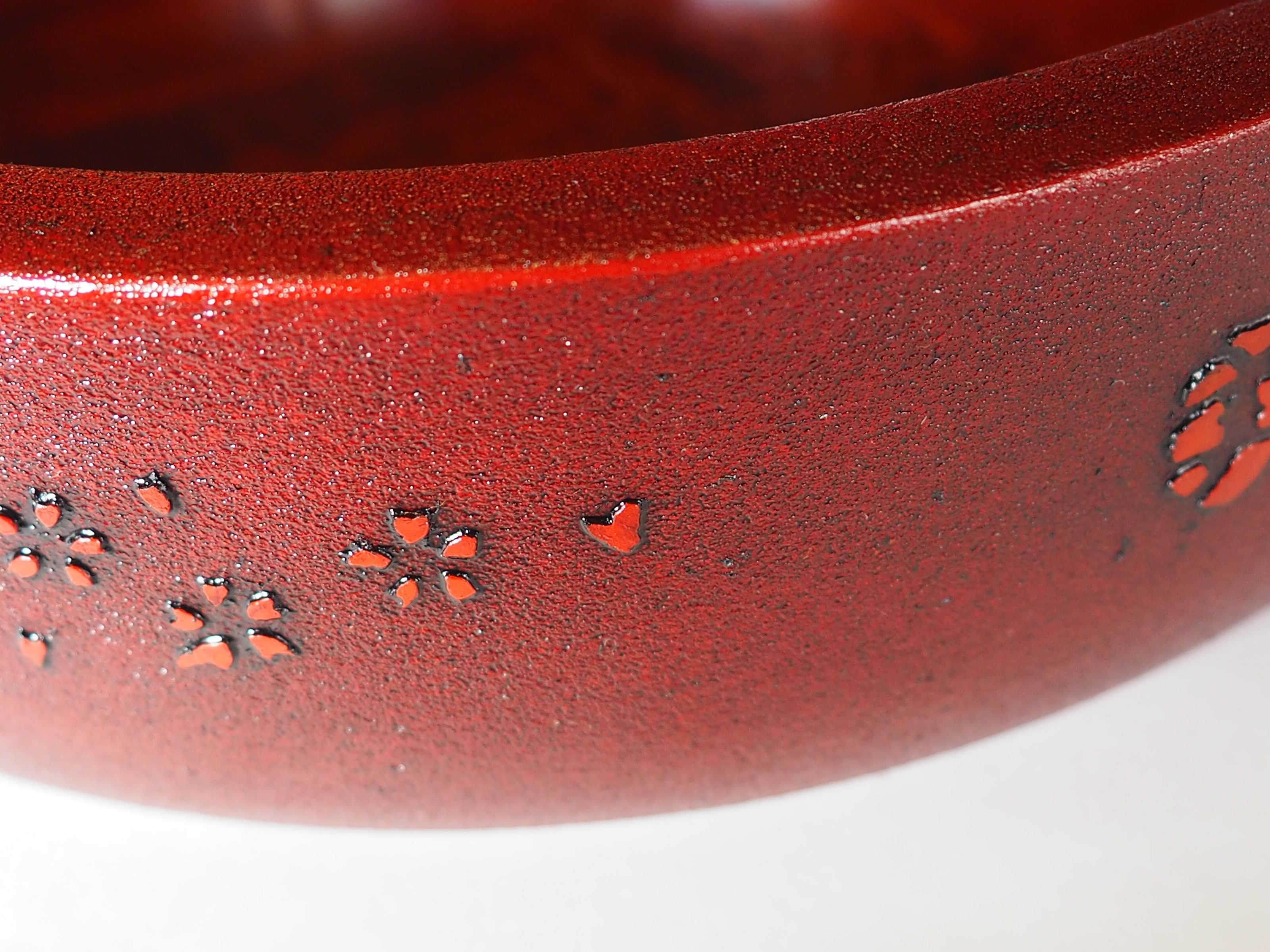 「土佐古代塗 8寸深菓子器」は、径23.6cm、厚さ7cmの深さを持つ美しい器です。しっかりとしたデザインは、和の美しさを引き立て、日常の食卓から特別なシーンまで幅広く活躍すること間違いなしです。また、側面には私の銘「季久」の「季」の文字と「花びら模様」が施されており、細部にこだわりが光ります。