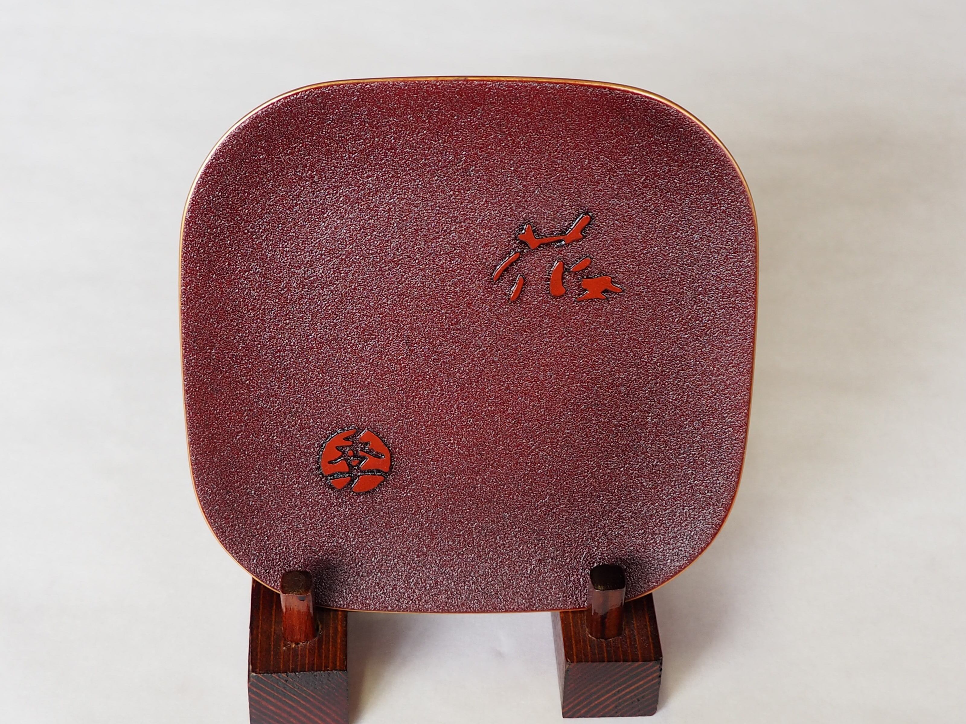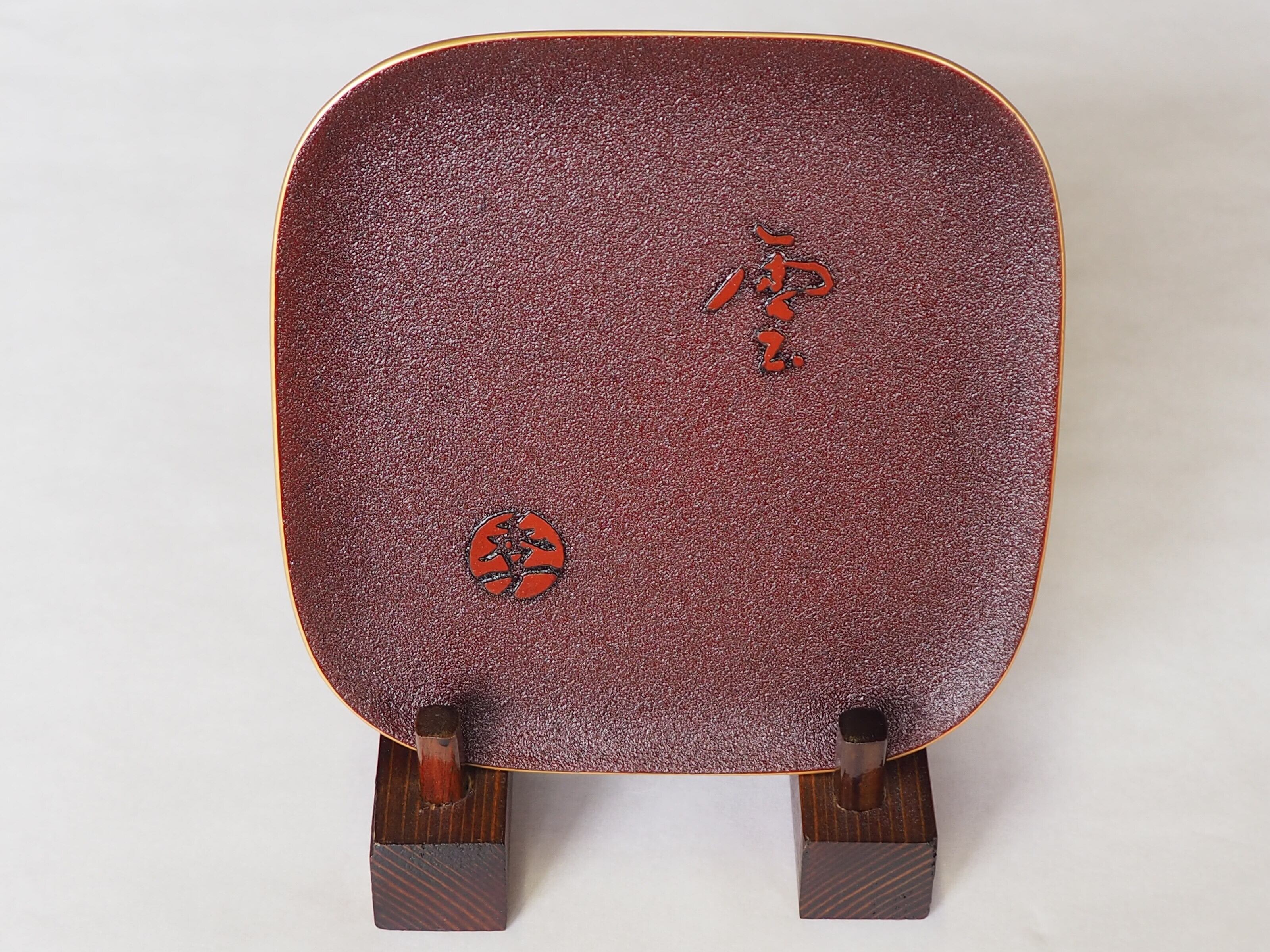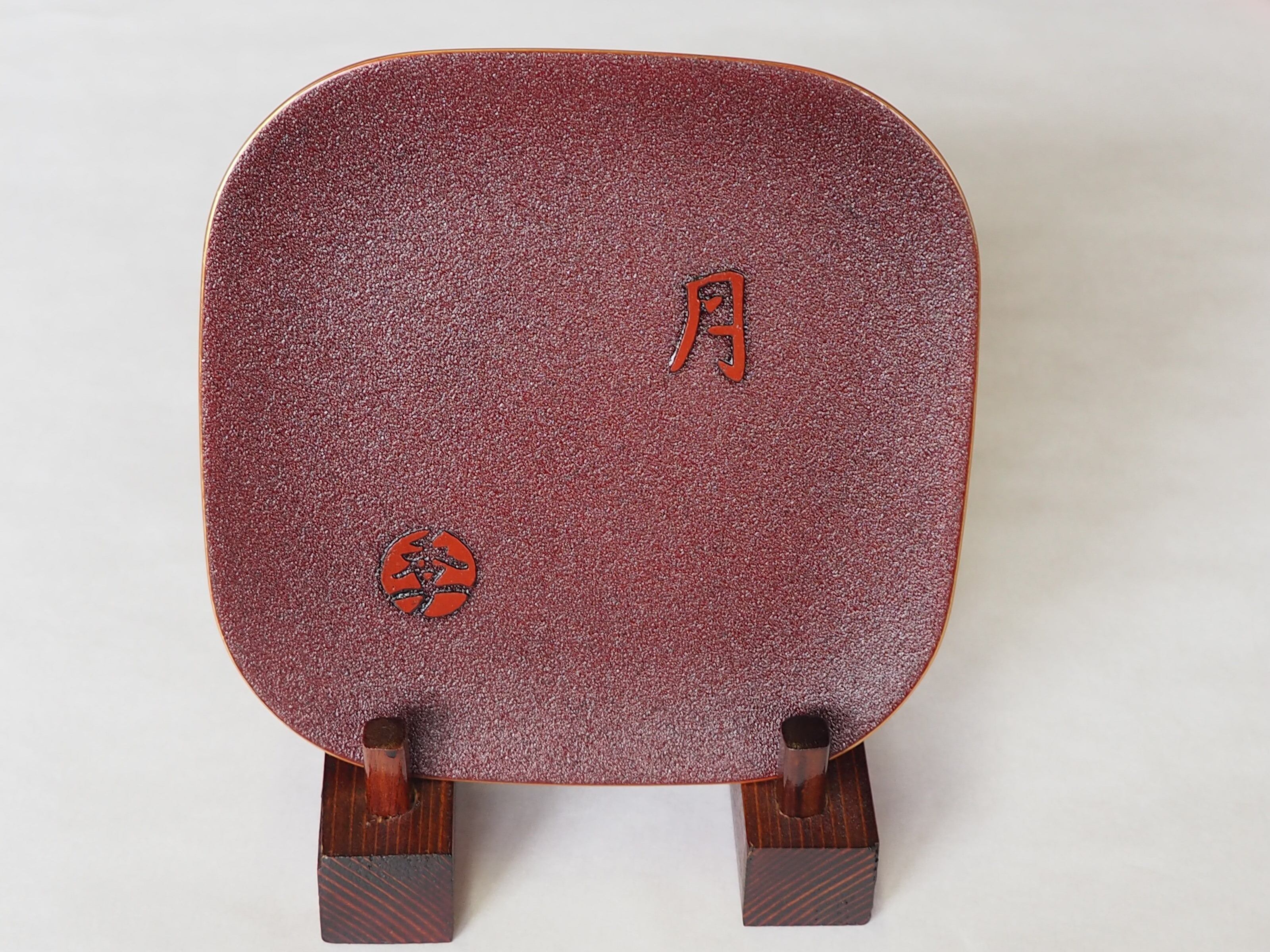 土佐古代塗とは、高知県土佐市で伝統的な技術で使われている塗り物です。木製品の表面に漆を何層も重ね塗りしていくことで、深い色合いと独特の質感が生まれます。この銘々皿も、職人がひとつひとつ手作業で塗り上げました。