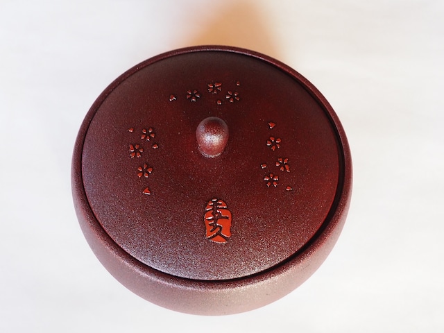 高知県伝統的特産品指定の土佐古代塗の「菓子器」になります。 2017年度の厚生労働大臣表彰の通称「現代の名工」に高知県としては初めて親子二代で受賞しました。現在高知県でも只一人の土佐古代塗職人となっています。 この菓子器は、その土佐古代塗の特徴の表面の「ザラ地」によって指紋や傷がつきにくく、1枚板をロクロ引きしているので非常に丈夫で、日常気軽にお使いいただけます。 蓋には【花】の文字が朱で浮き上がり、中は拭き漆仕上げとなっています。 蓋付なのでほこりも入らず衛生的で、小物入れとしてもお使いいただけます。 サイズ:径18cm×高7cm 材質:天然木(栃の木の挽き物) 塗装の種類:本漆